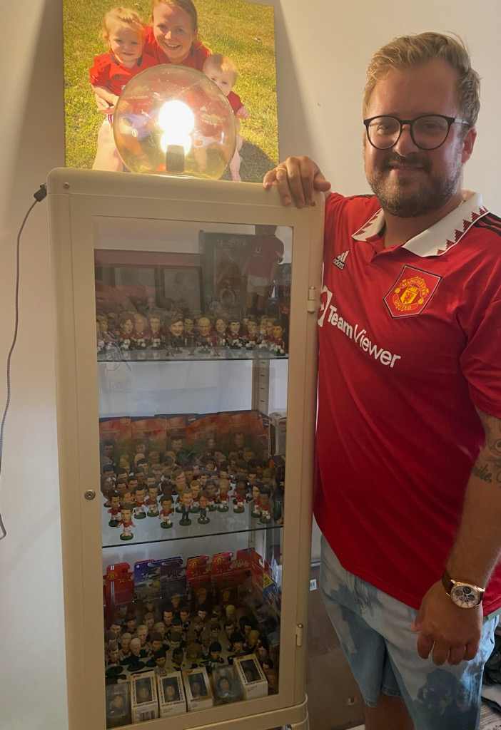 Nicklas’ kærlighed for klubben ses også i et vitrineskab og to skuffer i soveværelset. Her har han en stolt samling af omkring 350 fodboldfigurer, hvoraf cirka 250 af dem er United-figurer.