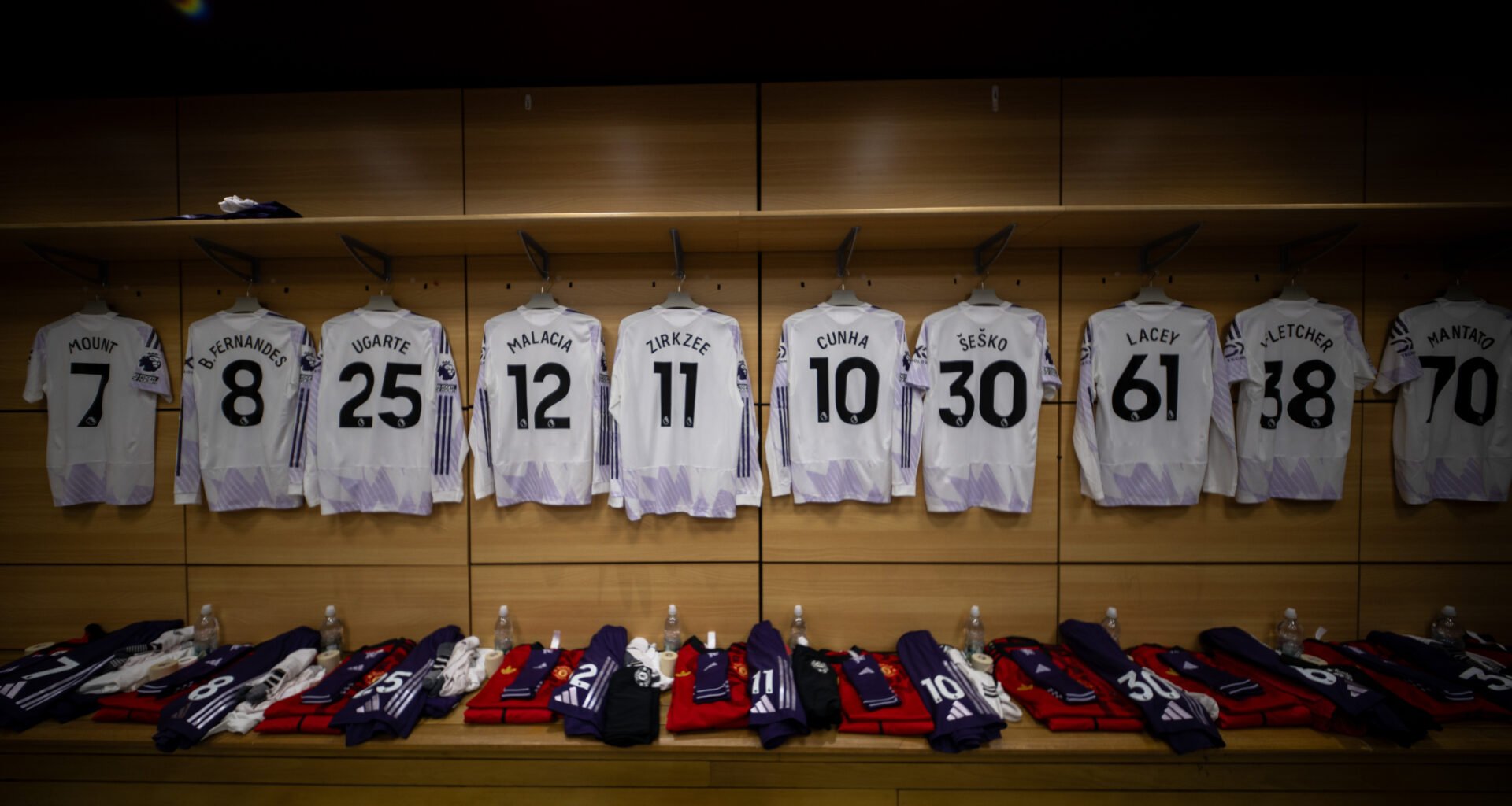 For at undgå farvesammenfald med hjemmeholdets overvejende bordeauxrøde trøjer, spiller United i den populære hvide trøje, som er inspireret af snefnug-designet fra den ikoniske udebanetrøje fra 1990-92. Trøjen kombineres med lilla shorts og hvide strømper.