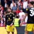 Klip til Brentfords dødsstød til sidst i kampen, hvor Mainoo smider bolden væk fremme på banen. Brentford slår hurtigt kontra og det ender med et (uopdækket) spark ude fra feltet af danske Mathias Jensen, der lukker kampen. Ved første øjekast er det et flot mål. Men ser man den igen, går det op for én, hvor pivringe en positionering Bayindir lægger for dagen, da bolden reelt ender i målets midte.