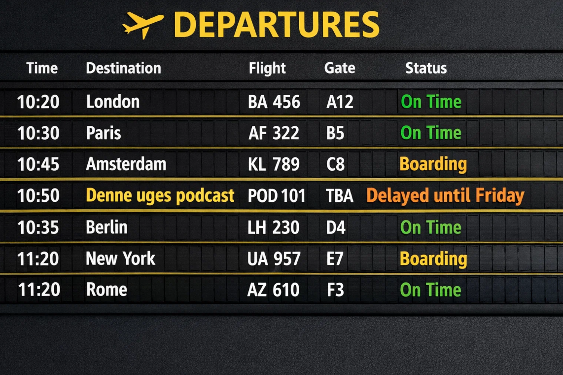 Det sker at podcast-kabalen ikke altid går op. I denne uge er samme tilfælde. Derfor vælger vi på redaktionen at udskyde ugens afsnit, der sædvanligvis udkommer tirsdag morgen, til fredag morgen i stedet.